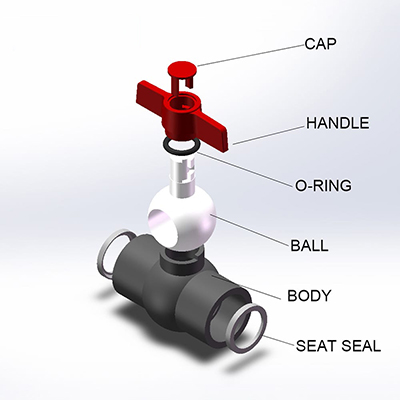 شیر توپی پلیمری از اجزای مختلفی تشکیل شده است که هر یک نقش مهمی در عملکرد صحیح و ایمن شیر ایفا می کنند. در ادامه، اجزای اصلی شیر توپی پلیمری را معرفی می شوند: