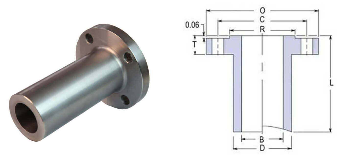 فلنج گلودار جوشی بلند که با نام های فلنج گردن بلند یا فلنج نازل (Nozzle Flange) نیز شناخته می شود، نوعی فلنج تخصصی است که عمدتاً در ساخت مخازن تحت فشار، تانک ها و تجهیزات فرآیندی کاربرد دارد. گردن بلند این فلنج ها امکان جایگزینی یک تکه برای ترکیب فلنج گلودار جوشی استاندارد و یک قطعه لوله را فراهم می کند. این ویژگی باعث افزایش استحکام ساختاری، توزیع بهتر تنش ها و کاهش تعداد نقاط جوش و ریسک نشتی می شود. به همین دلیل، فلنج های گلودار جوشی بلند معمولاً در نقاطی استفاده می شوند که کنترل تنش، دقت بالا و ایمنی بیشتر اهمیت ویژهای دارد.