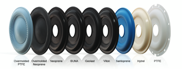 مهمترین قسمت پمپ دیافراگمی است که از متریال های مختلف مانند PTFE، لاستیکی، ترموپلاستیکی، نئوپرن یا وایتون ساخته می شود و با حرکت رفت و برگشتی خود حجم محفظه را تغییر می دهد تا سیال مکش و تخلیه شود.