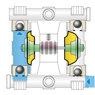 مکانیزم ساده این پمپ ها باعث شده در انتقال سیالات خورنده، ویسکوز یا دارای ذرات جامد از محبوبیت ویژهای برخوردار باشند. عملکرد پمپ دیافراگمی به شرح زیر است: