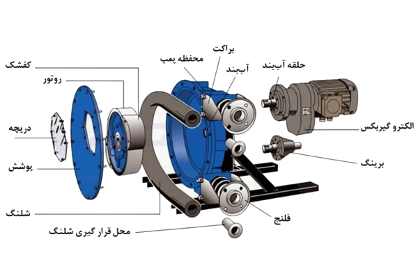 پمپ پریستالتیک از اجزای مختلفی تشکیل شده است که توسط آنها انتقال سیالات را انجام می دهد. در ادامه به معرفی اجزای اصلی پمپ پریستالتیک می پردازیم: