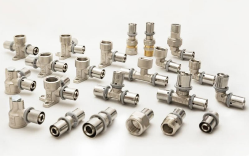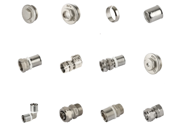 - اتصالات پرسی: این اتصالات بهوسیله دستگاه پرس روی لوله نصب می شوند و به دلیل آب بندی کامل و مقاومت بالا در برابر نشتی، در پروژههای حساس استفاده زیادی دارند. بدنهی آن ها از آلیاژ برنج با روکش نیکل ساخته شده و نصب سریع تری نسبت به نوع کوپلی دارند.